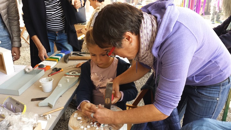 Provare un mestiere significa impegnarsi per comprendere le caratteristiche specifiche di ogni strumento di lavoro. Imparando ad impugnare correttamente la martellina vedrete i risultati in tempo reale. Perché userete le tessere che spaccherete per iniziare a costruire il vostro mosaico.