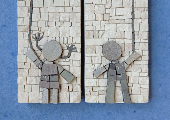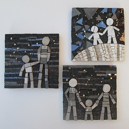 Questi piccoli “racconti a mosaico” sono realizzati con gli strumenti tradizionali del mestiere (tagliolo e martellina) e con tessere/frammenti di marmo, pietre naturali e materiali di recupero.