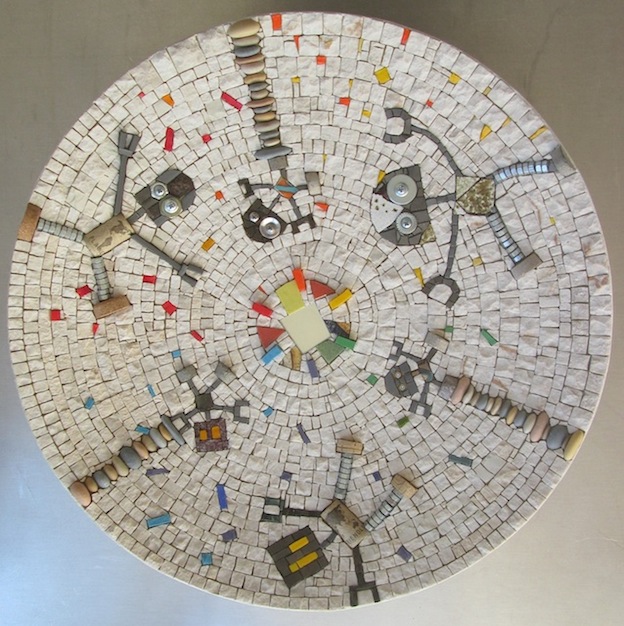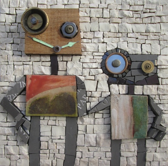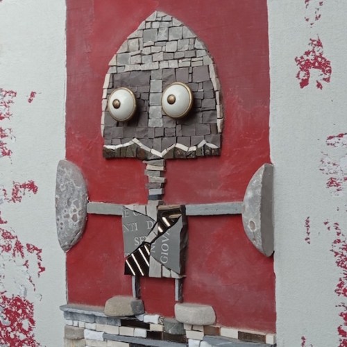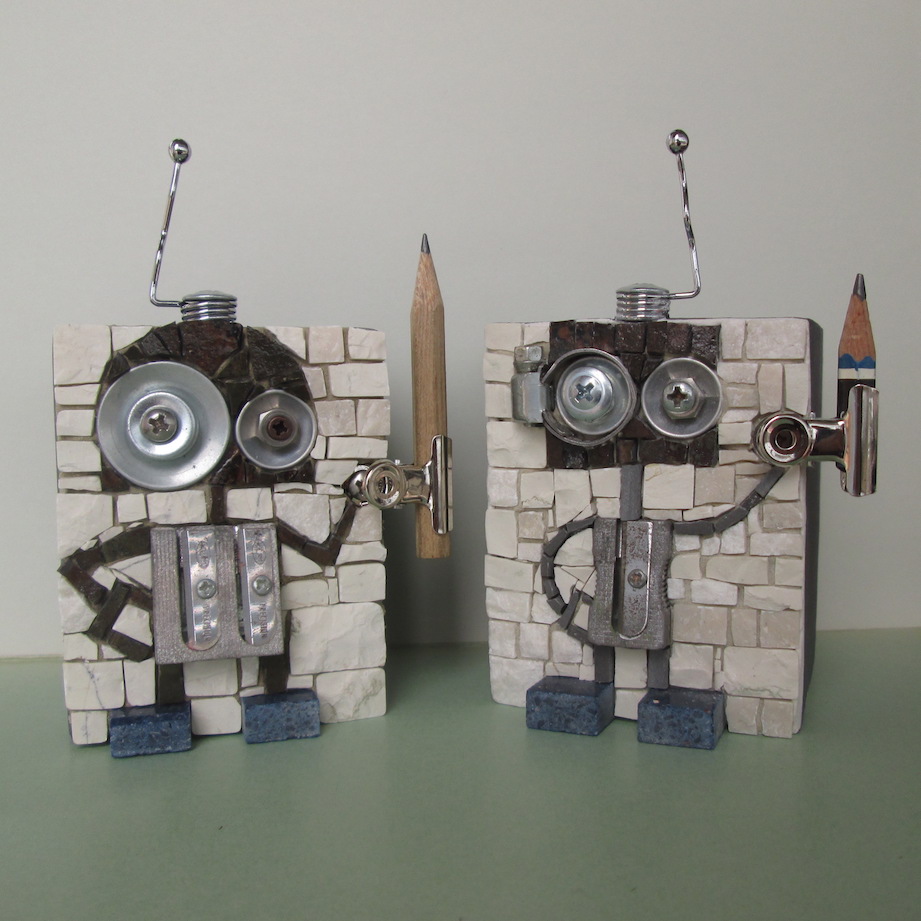 I am a mosaic artist and through my technique I created, day by day, many robots made of stones, ceramic, Murano glaze and wooden shapes.