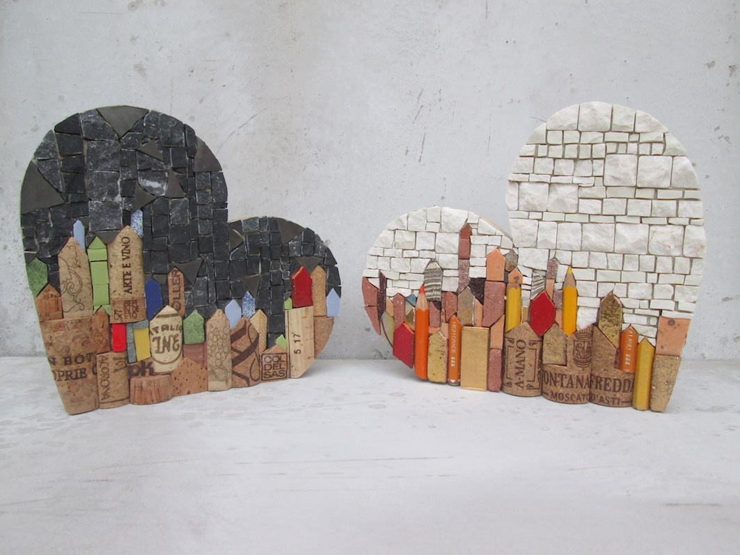 Piccoli mosaici ma anche opere di medio e grande formato.
