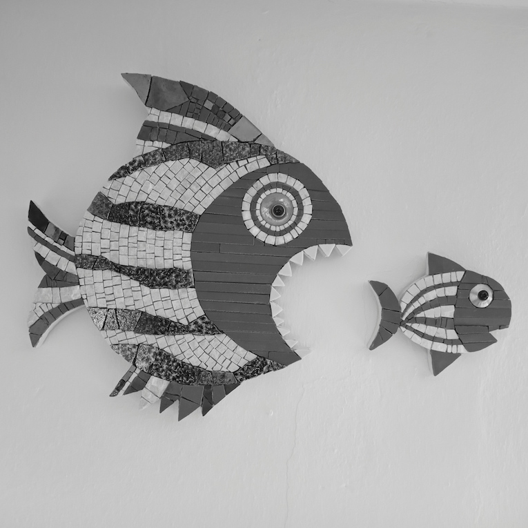 “Big fish eat little fish” (composition of 2 or 7 mosaics).