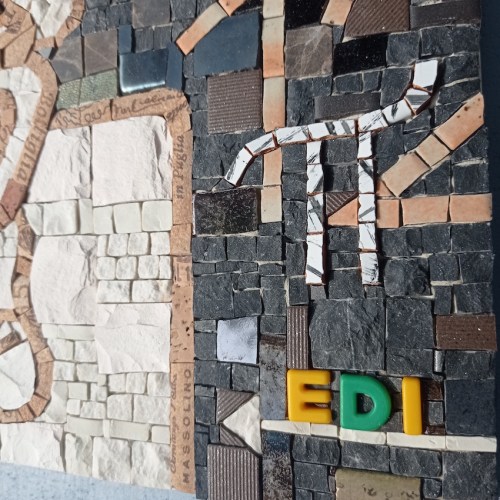 Ho realizzato questo mosaico sulla vecchia anta di un comodino.