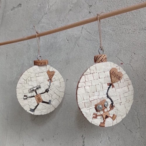 I diversi soggetti (robottini, pesci e paesaggi di fantasia) sembrano “vignette” di un fumetto perché, pur ricordando le classiche palline di Natale, ogni creazione/creatura diventa anche un racconto capace di comunicare ironia, simpatia, dolcezza.